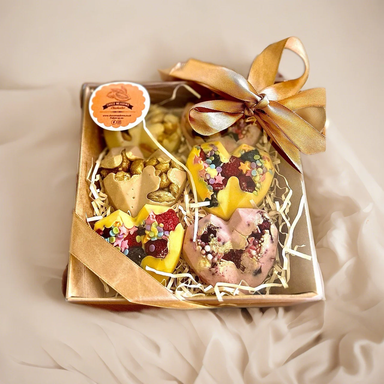 Our “ChocoMystique Marvels” collection features an array of decadent treats, including delicate chocolate flowers and charming hearts adorned with luscious berries and crunchy nuts. Every creation is a masterpiece of flavour and texture, expertly crafted from the highest quality Belgian chocolate.